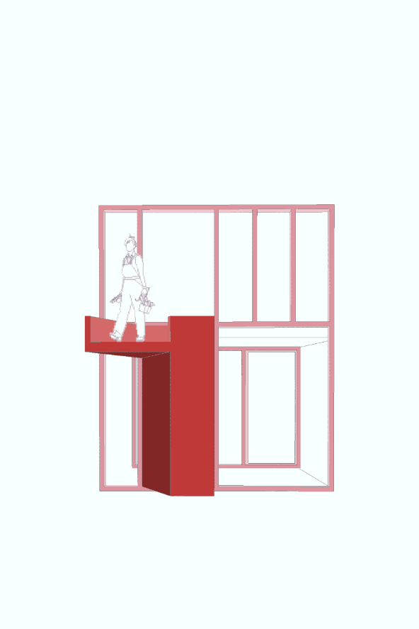 Gegeven is de minder gunstige ligging van de bestaande rijwoning. Een voorgevel in het zuiden en een tuin in het noorden.