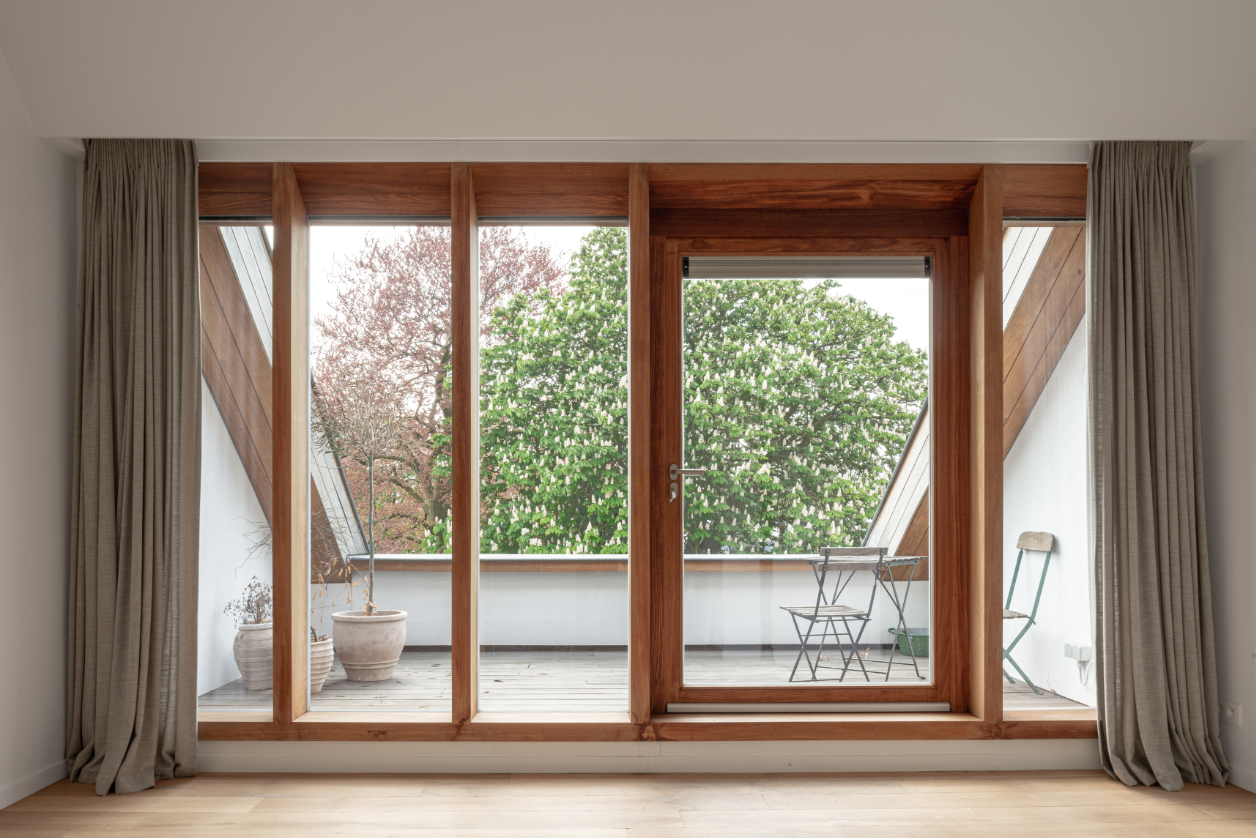 Het dak wordt volledig gerenoveerd en getransformeerd door aan de straatkant een inpandig dakterras te voorzien. Hier kan optimaal worden geprofiteerd van de zuidzon en uitzicht over de stad.