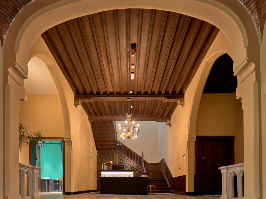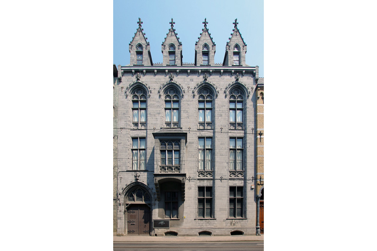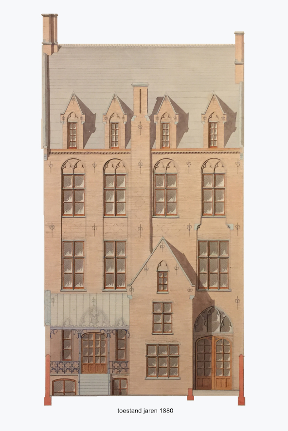 De achtergevel van historisch Hotel Dumont is geschonden door de aanbouw van een parochiezaal.