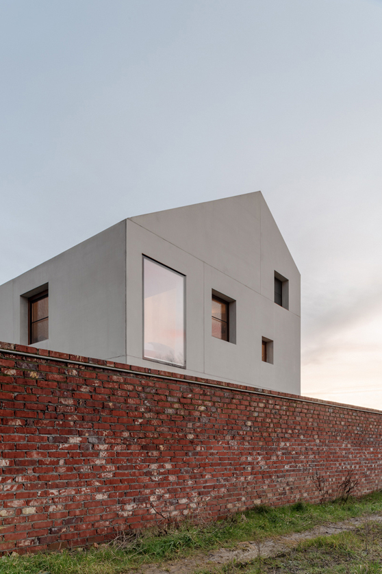 Als afwerkingsmateriaal kiezen we voor beton in gevel en dak. Hierdoor krijgt het gebouw een sculpturaal karakter. Project FRIES krijgt hierdoor een sterke eigen identiteit en leesbaarheid, zonder te willen opvallen.