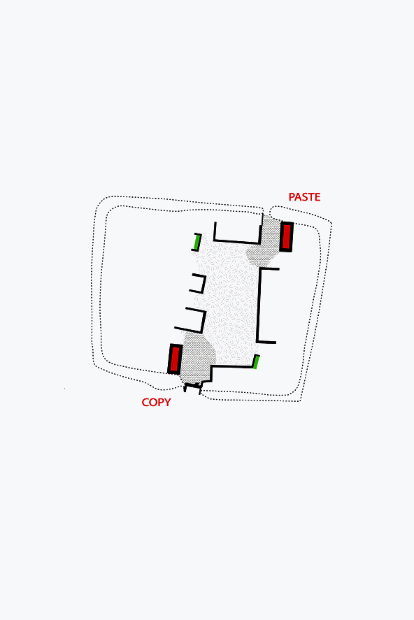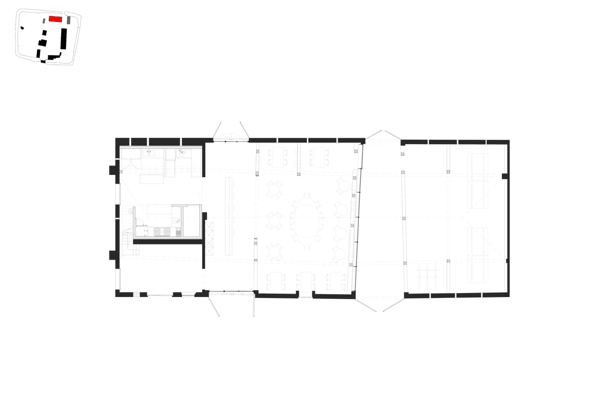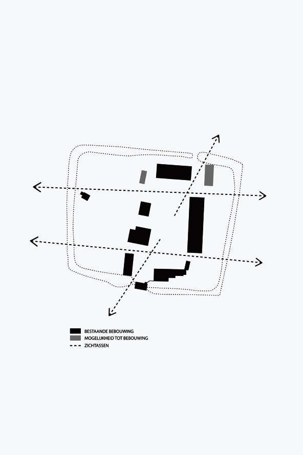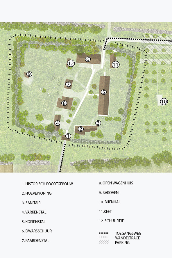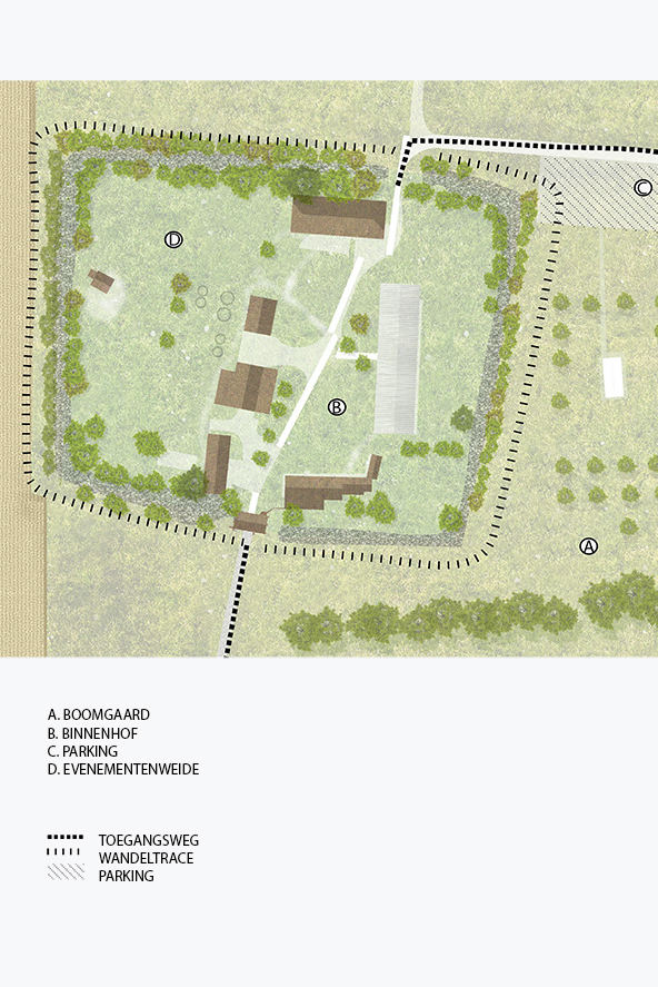 Sinds de 13e eeuw tot middden 20e-eeuw vormde deze omwalling een gesloten systeem met twee poorten. Een zuidelijke poort met poortgebouw en dreef als hoofdtoegang en een kleinere noordelijke poort met wegenis als tweede toegang. Deze diensttoegang diende vooral om de achterliggende akkers en weilanden te ontsluiten.