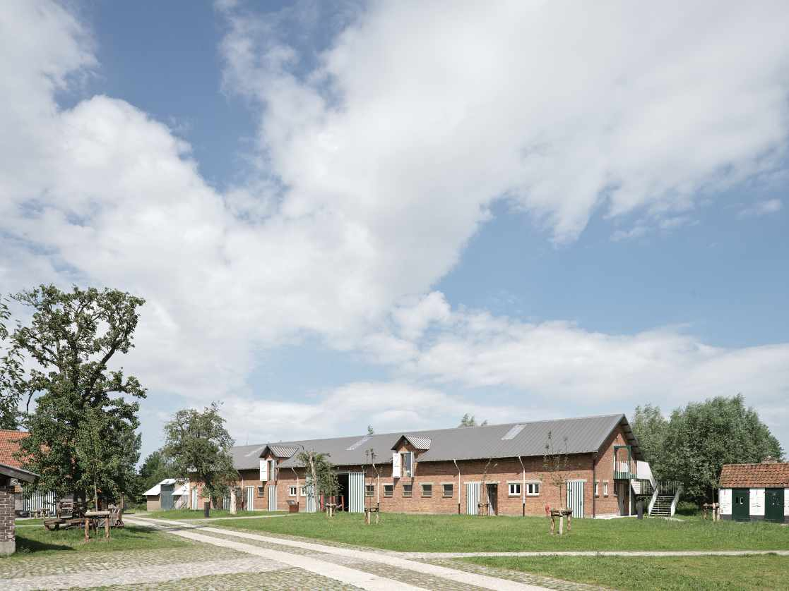 De koestal, gebouwd in 1958, staat symbool voor het pionierswerk en de voorbeeldfunctie die de boerderij had bij de modernisering van de landbouw in de streek gedurende de naoorlogse periode. Het onbenute dak wordt geactiveerd en herbestemd tot ruimte voor lezing, opleidingen en kookworkshops.