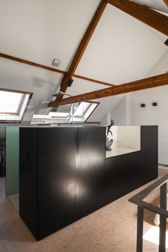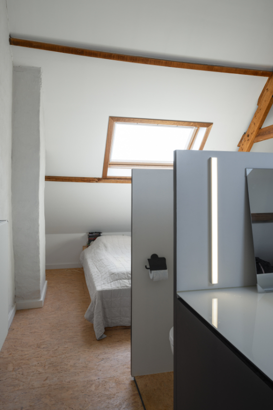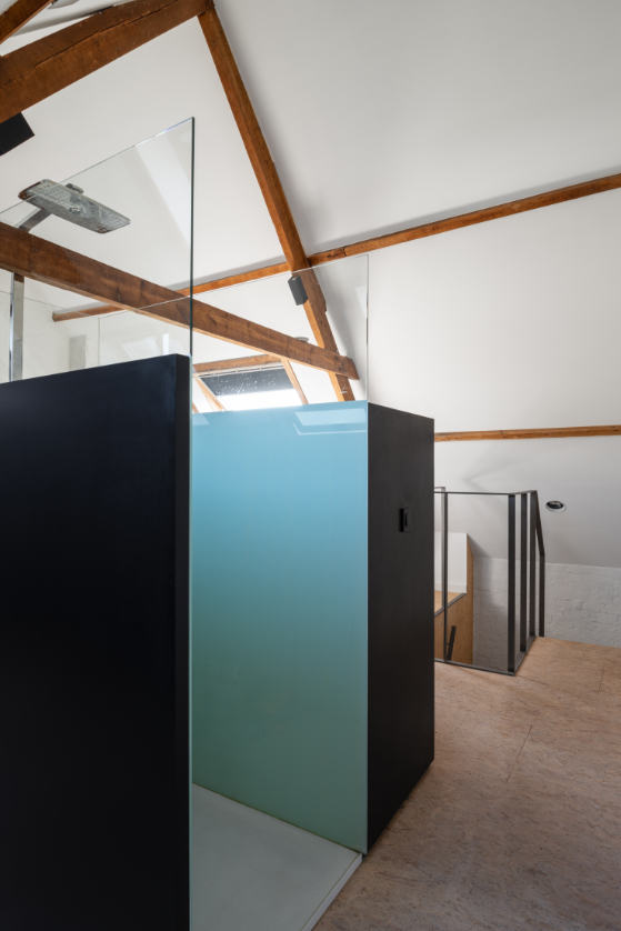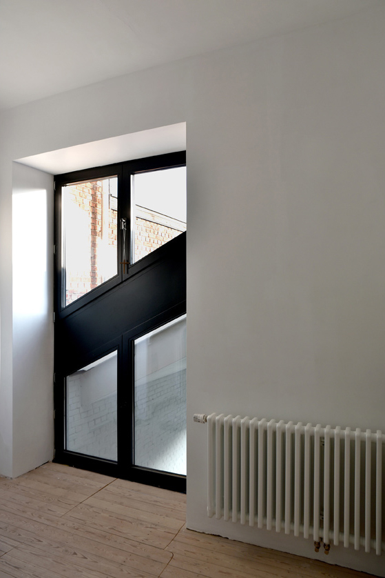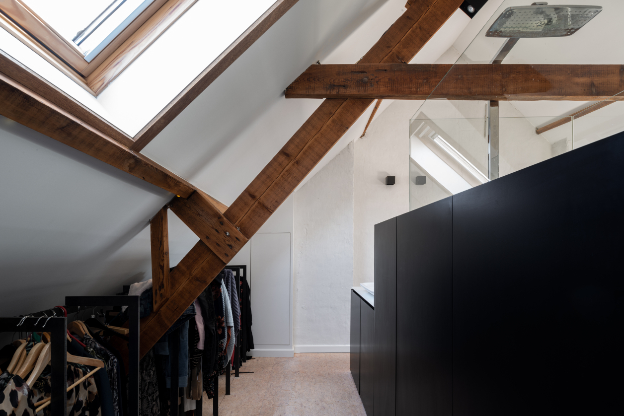 In deze ruimte start een nieuw trapdeel naar de eerste verdieping, waardoor er centraal in de woning extra ruimte ontstaat voor een ruime (fiets)berging. Zowel de ingreep als het nieuwe plan is eenvoudig, maar toch heeft het concept de smalle rijwoning ruimtelijk compleet getransformeerd.