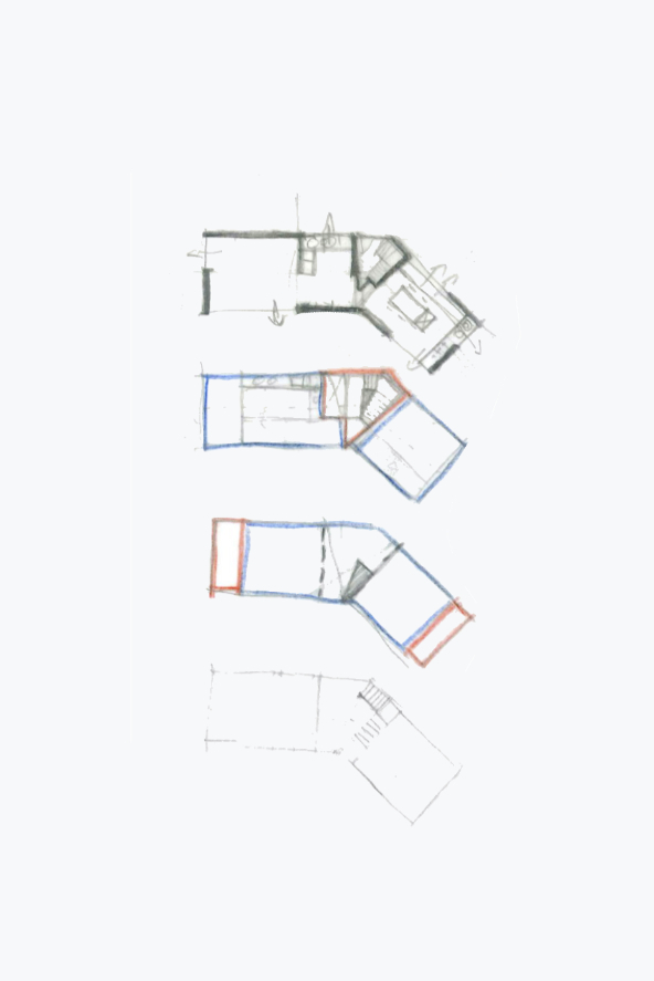 We zoeken naar de juiste inplanting op het perceel en spelen met de gevellijn.