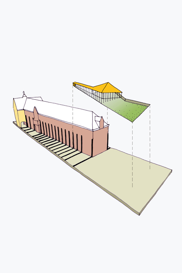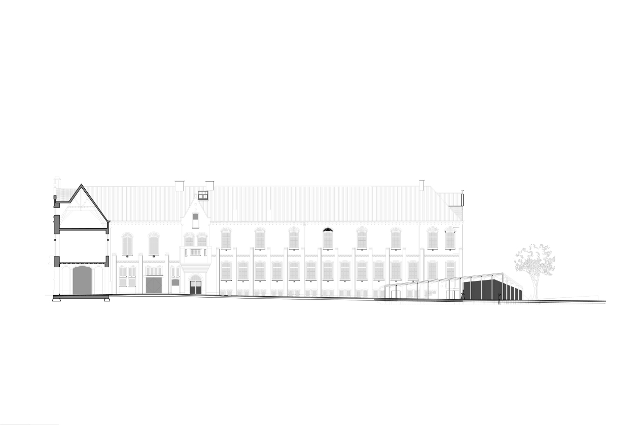 Een nieuwbouw uitbreiding geeft het monument een tweede aangezicht dat nieuwe relaties met de directe omgeving faciliteert. De omvorming van museumtuin tot publieke buitenruimte en de integratie van een FOP (fietsonthaalpunt) schrijven de site in in het ruimere netwerk van zijn omgeving.