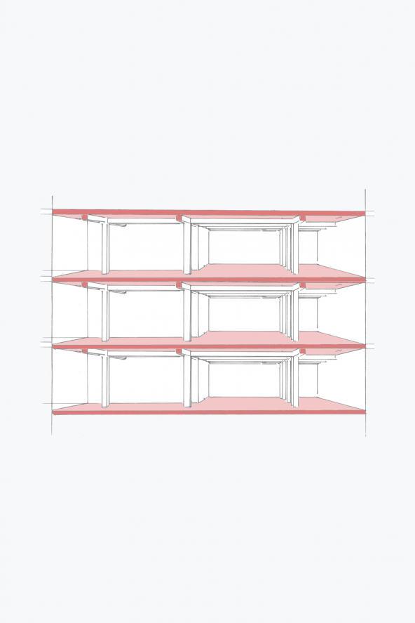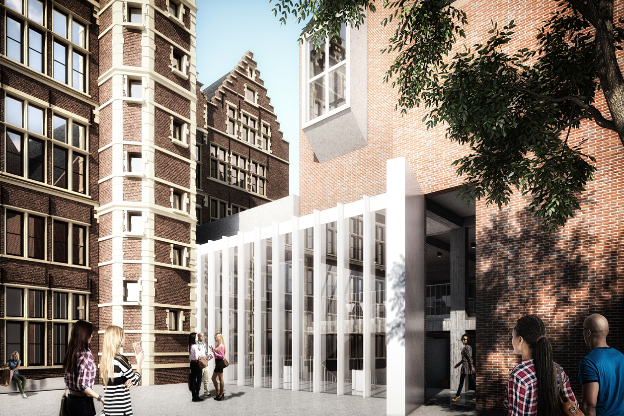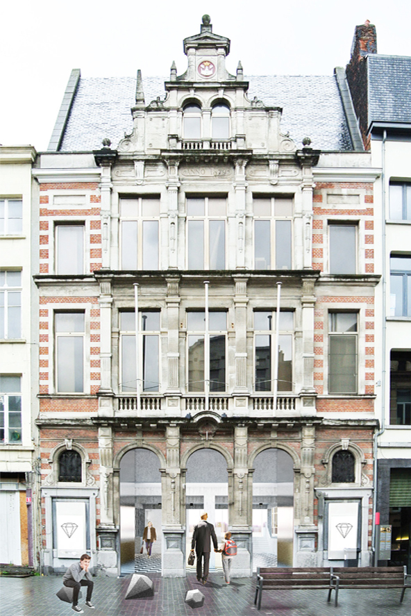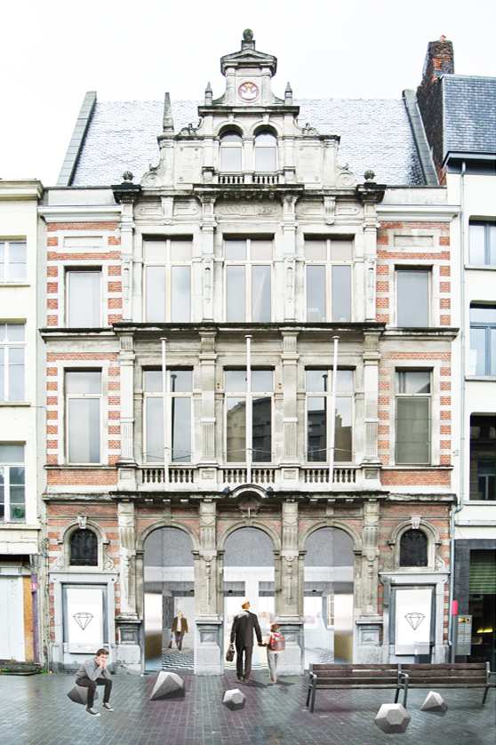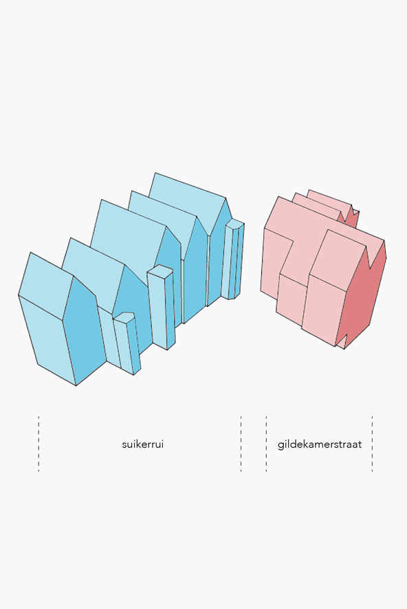 In essentie staan er 2 gebouwen op de site. Het zijn ruwe diamanten: gebouw "Suikerrui" en gebouw "Gildekamerstraat". Elk van deze heeft zijn eigen ruimtelijkheid, materialisatie en sfeer dewelke we in het ontwerp maximaal willen inzetten en versterken.