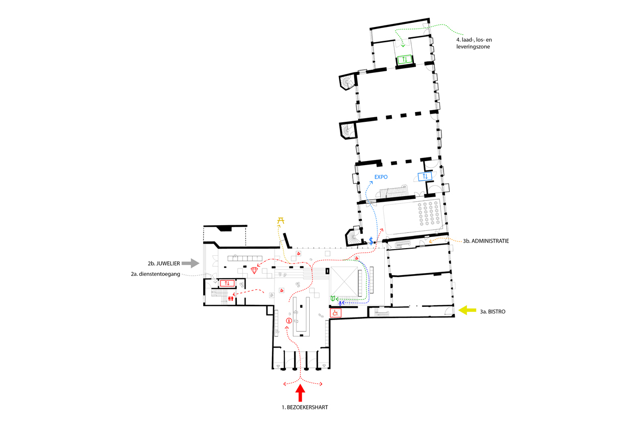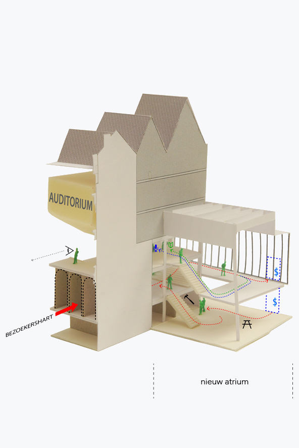 We kijken naar de structuren van het gebouw waarin het museum moet worden ondergebracht. We inventariseren de beschikbare ruimtes & plekken, elk met hun specifieke kwaliteit en sfeer.